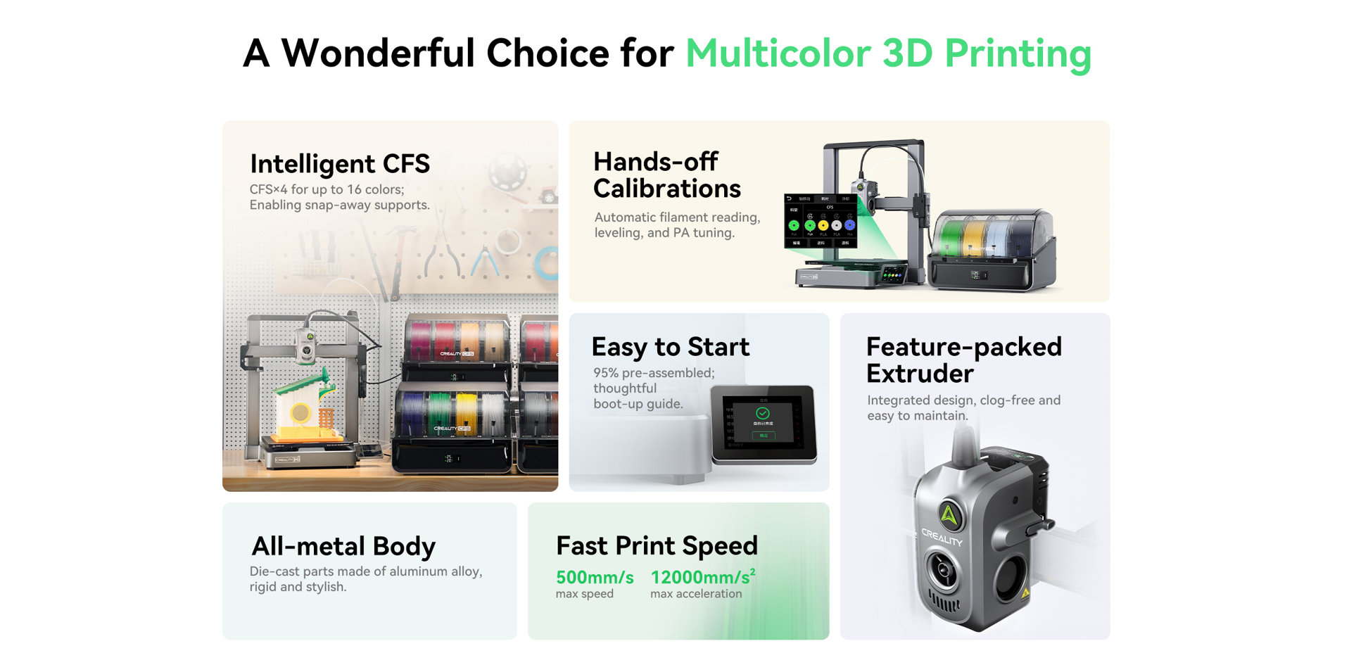 - Hands-off Calibrations: Auto filament reading, leveling, and PA tuning.